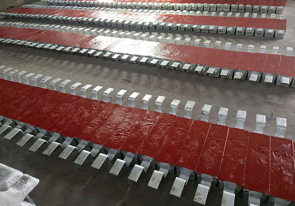我公司按照GB/T 4948-2002研發(fā)生產(chǎn)的鋁合金犧牲陽極(簡稱:鋁陽極)適于海水介質(zhì)中的船舶、機械設(shè)備、壓載水艙、儲罐內(nèi)壁、濱海設(shè)施、海底管道、碼頭鋼樁、海洋平臺、電纜等設(shè)施金屬防腐蝕的陰極保護(hù)。